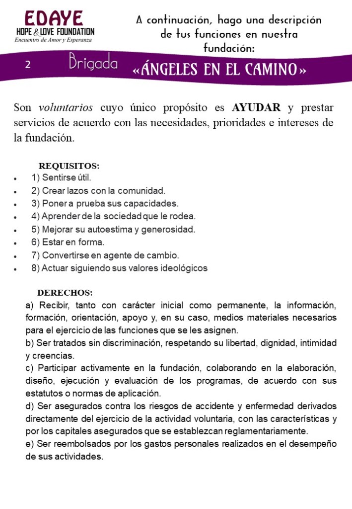 La Fundación necesita que nuestra misión se difunda más que nunca. La brigada «Ángeles en el camino» nos apoya incondicionalmente para conseguirlo.